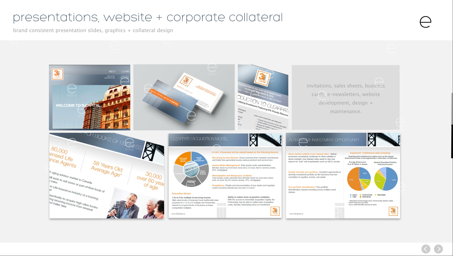 Our expertise spans several industries. With our hands on approach, we create impactful collateral for real estate, government, music, blockchain, international finance, insurance, product development, medical, online services, green focused, tech and health and wellness clients.